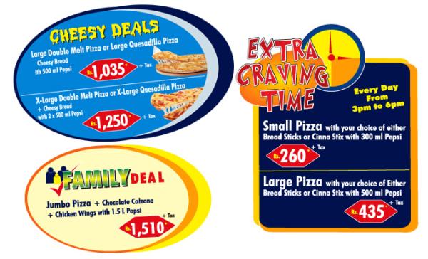 Domino’s is a top leading pizza’s restaurant in Islamabad. Dominos Pizza Islamabad restaurant is providing the best elegant and hygienic environment with a great taste in various pizzas. DOMINO’S PIZZA Islamabad deals in Chicken Tandoori, Hot & Spicy and Tex- Mex Pizzas. DOMINO’S PIZZA menu offers delicious recipes for Cheese Lovers, Beef Lovers, Chicken Lovers…etc. In addition Menu it has Bread Sticks, Cinna Stix, Cheesy Bread, Crunchy Chocolate Calzone, Chicken Wings and many more plus for topping you can all add Meat, Vegetables and more with variety of drinks to make your food complete with Domino’s Pizza.