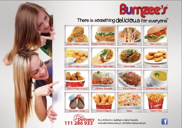 Bumzees Restaurant Karachi is not only different due it’s well modernized interior décor but the food also makes it different among all others. Bumzees offers Crispy Chicken, Club sandwich, San o wich, Nuggets, Chow mein, Chicken Fajita roll, Fish & Chips, BBQ Wings, Chicken Corn Soup, Chocolate Shake, Chicken sashlik and much more in very reasonable prices. Intact it is an ideal eating out place for family with FUNKY BUNKY to have pleasure time for kids. So let’s come towards Bumzees Restaurant Karachi and enjoy the delicious taste of foods from their menu with some exclusive deals and offers.