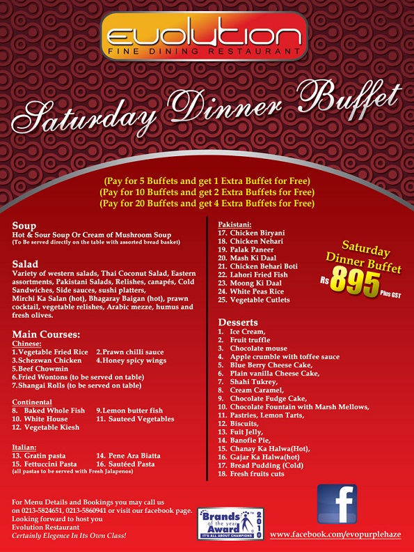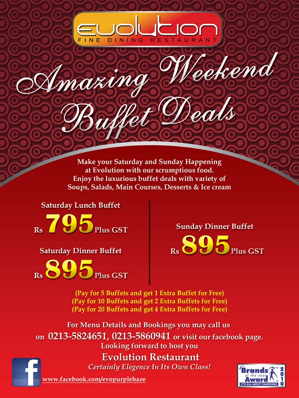 Evolution is to improve the world with delicious, nutritious fast food that is good for you and good for the earth. Evolution is the primary restaurant that greatly welcomes bookings for annual meetings, launchings, exclusive shows and social seminars. Evolution Restaurant Karachi is the pioneer restaurant in Pakistan that is offering its clientele a “WI- FI Zone” where their business patrons can make use of Internet by their laptops to the extent that they desire without disbursing any additional charge. Evolution restaurant is used as a club or venue for lots of media productions. On account of its furnishings and ambience, evolution Karachi is considered to be the most required venue by the local and international media producers. Evolution club deems in endorsing art and theatre for their client. Evolution has offered its venue free for art exhibitions and theatre plays and has also carried a lot of sports teams of Karachi, Sind and Pakistan by taking care of them for dinners, supporting and awe-inspiring their guts. EVOLUTION is the only restaurant that has its own café with a diverse menu. Aside from the two regular menus, Evolution Menu & Deals Pakistan serves a range of additional regular buffets frequently to supply variety to its customers.
