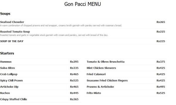 Gon Pacci is a contemporary cafe that serves Mediterranean and fusion cuisine in a casual and friendly environment. Located in the popular dining area of Defence on Khayaban-e-Shahbaz, the cafe offers an upbeat and colorful retreat in the midst of the city. Gon Pacci Cafe Karachi is a modern classic style of cafe- There foods are about fusion, of technique, cuisines and ingredients. Made with skill and heart, each and every entree on our menu is a treat on its own. Our chefs produce each dish with great attention to detail, taste and presentation. You can enjoy everything from a fulfilling breakfast to a quick sandwich, hearty burger, pizza or elaborate pasta’s and seafood specials among other main entrees, bearing in mind to keep room for our luscious desserts, drinks and coffees. Gon Pacci cafe offers a warm, inviting ambiance, a true blend of contemporary ideas fused with classic elements promising an experience extraordinaire.