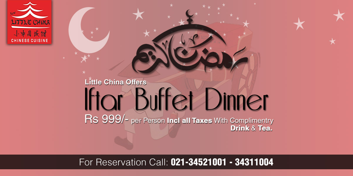 Little China Restaurant P.E.C.H.S Restaurant - Find great deals and iftar buffet dinner from Little china restaurant. Browse best deals and offer of 2015 Ramzan buffet dinner Rs: 999/- per person including all taxes with complimentary drink and tea. complete information of Little China Restaurant P.E.C.H.S Restaurant contact no, address and hot deals available Hamariweb Travel.
