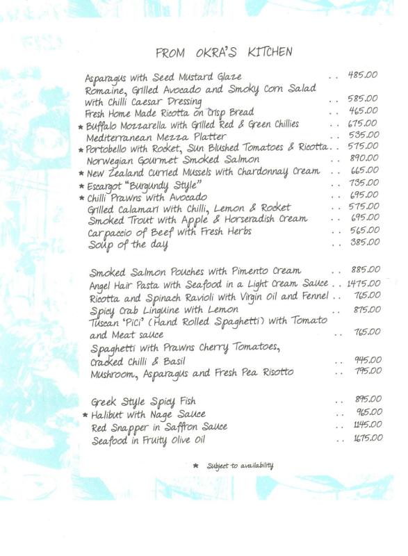 Okra opened its doors in 1999 on Zamzama in Karachi and redefined what fine dining was all about. Today, Okra means different things to different people – a restaurant with just the right ambience, a place to be seen at or, more importantly, the best place for a Mediterranean cuisine. Aside from the food, what sets Okra apart is the impeccable service it provides. Efficient and courteous, most of the staff have been with Okra since its inception. They are knowledgeable and passionate about the food they prepare and serve and are able to recommend dishes according to the diner's palate. The restaurants provide its patrons with an elegant and intimate space ideal for lunches or as a place to catch up with a group of friends. A quaint, simple yet stylish setting, an intimate space, and sublime food combine to give diners an unforgettable experience. The decor is simple, the lines are clean, the service is great and the music is perfect. All these different qualities come together to make dining at Okra an experience.