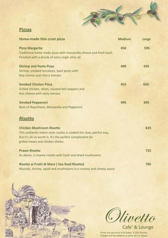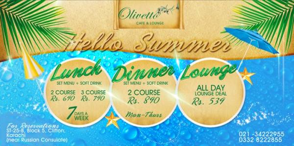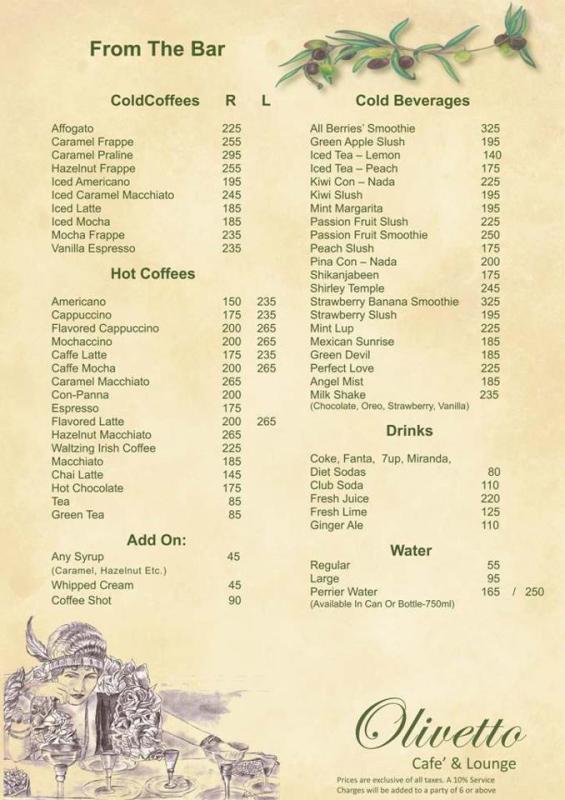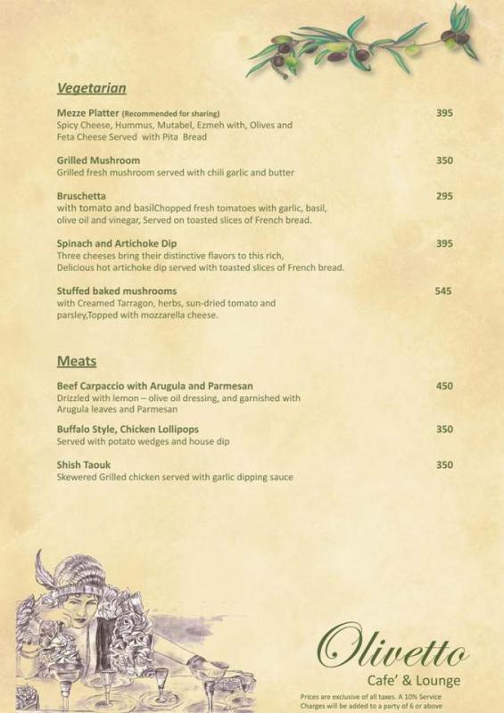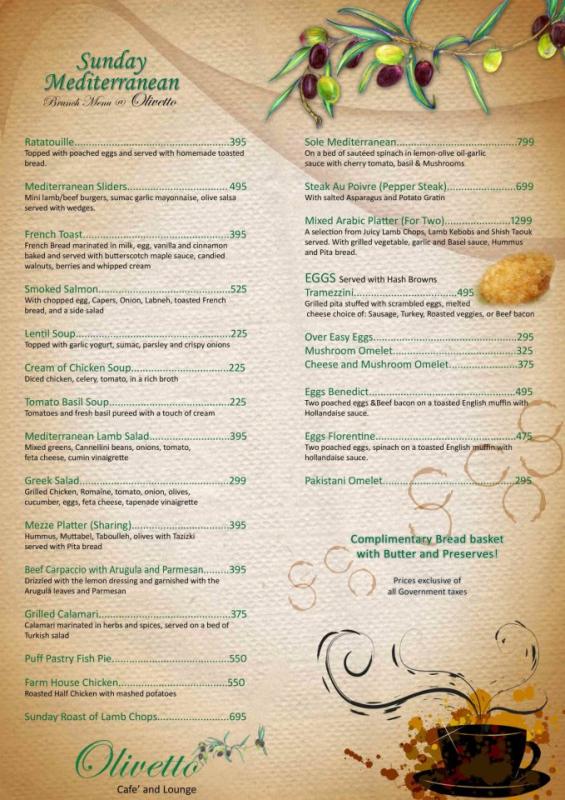 Olivetto Restaurant Karachi offers spectacular and delightful Italian and French cuisines, cocktails and starters. Olivetto Restaurant Karachi is a great place for eating an actual taste of French and Italian recipes in a very calm and attractive environment. It is also a perfect place for all official and non official parties so let’s come and enjoy your precious moment with great taste and graceful environment at Olivetto Restaurant Karachi with some exclusive deals and offers. Restaurant Timing: Monday-Saturday 10:00am-12:00am & 12:00pm-11:00pm, Sunday 10:00am-12:00am & 12:00am-11:00pm