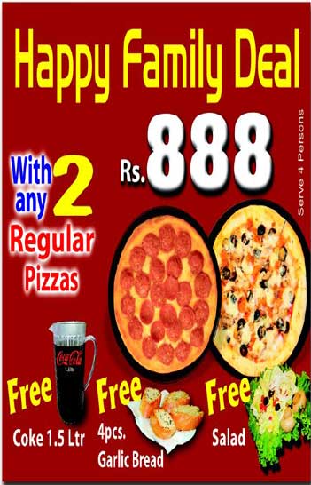 Pizza Kinng Restaurant Karachi is an Italian food restaurant situated in Karachi. Mr. Sajid Rafiq owns the restaurant. Pizza Kinng started its operations from Karachi in the year 2009. Now, Pizza kinng have several outlets in Karachi including Shahrah-e-Faisal, AlMadni Mall, Nishter Road, Gulistan-e-Johar, North Nazimabad and Makro saddar Karachi. At Pizza Kinng you’ll feel calm with updated atmosphere. It’s surely a comfortable place for eating out in Karachi. It is an ideal place for personal parties. The meal becomes tastier finding yourself at Stylish chairs, set along with beautiful interior. With quick, exclusive and pleasant service at Pizza Kinng stands prominent. Some more facilities at Pizza Kinng include air conditioned hall, kids corner, take away and free home delivery service. So lets come towards pizza kinng restaurant Karachi and enjoy their delicious taste of cuisines form their menu with some exclusive deals and offers.
