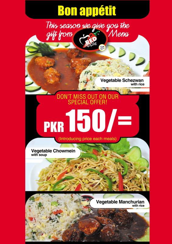 Red Apple Restaurant Karachi is one of the delicious fast food restaurants that offer the international high quality fast foods. Red Apple Restaurant Karachi is the sole provider of fresh and healthy food to health and quality conscious. Its also serve the variety of Asian culture foods. Red Apple is proud to keep Asian culture alive by presenting Asian food in the manner that attracts the masses of our society and also focusing to keep giving quality food & service to keep satisfying their valued customers. So let’s come towards Red Apple Restaurant Karachi and enjoy their tasteful menu recipes with some exclusive deals and offers.