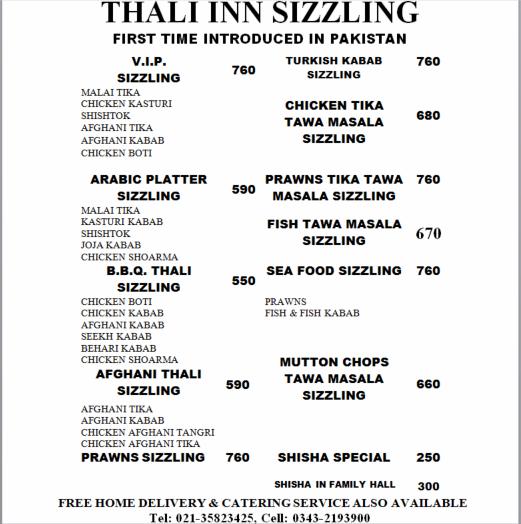 Thali Inn Restaurant Number Karachi - Menu, Deals, Location & Offers 2016 - Find the Thali Inn Restaurant & other Restuarants in Karachi with an extensive long range. Discover the amazing city Karachi by visiting your choice of Restaurants. We updates you with all the famous Restaurants in Karachi with thier Menu, Deals, Location & Offers 2016. Find complete details with reviews, ratings, map & photos of Thali Inn Restaurant Karachi.